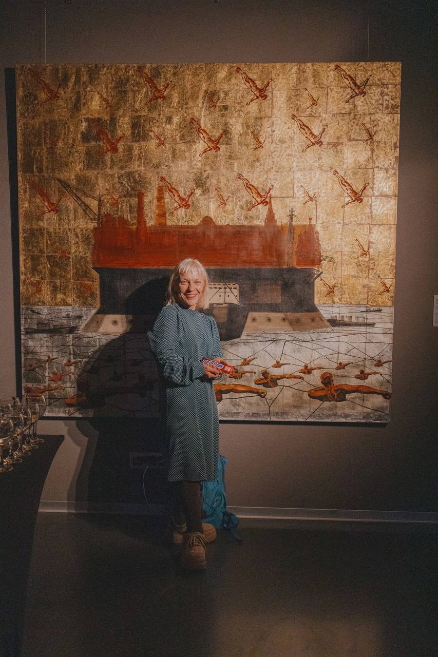 - Более 20 масштабных живописных полотен, где лейтмотивом проходит образ человека, прыгающего в воду — сильного, смелого, свободного.