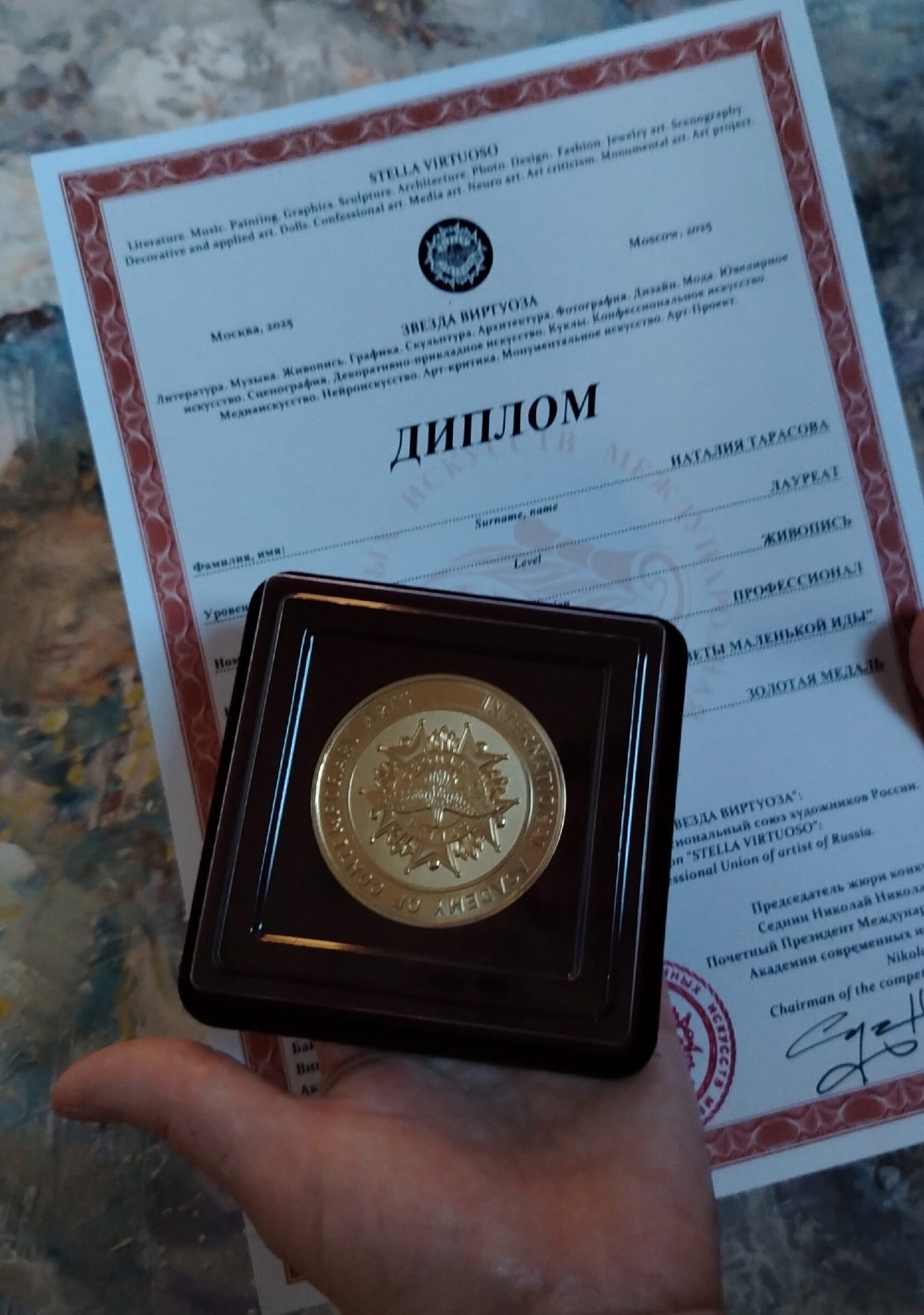 В этом году резидент Созерцай Наталия Тарасова стала лауреатом премии «ЗВЕЗДА ВИРТУОЗА» [STELLA VIRTUOSO] 2025 в направлении Живопись с работой Цветы Маленькой Иды.